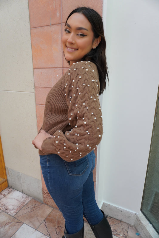 Pearl-Kissed Cable Knit Cardigan
