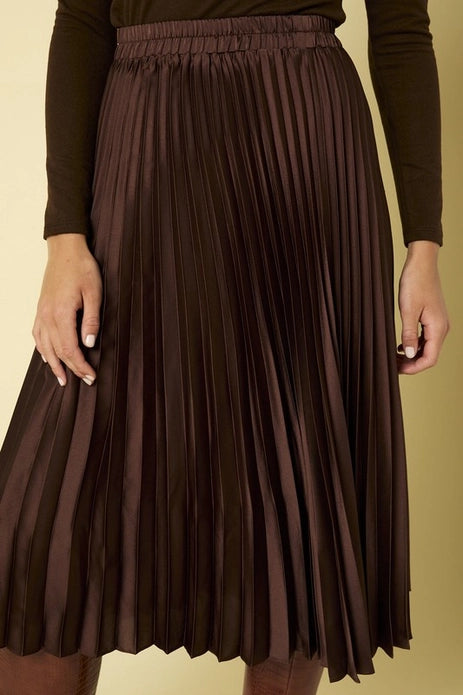 Luxe Chocolate Pleated Midi Skirt