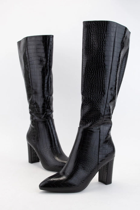 Martha Pointed-Toe Croc Pattern Riding Boots